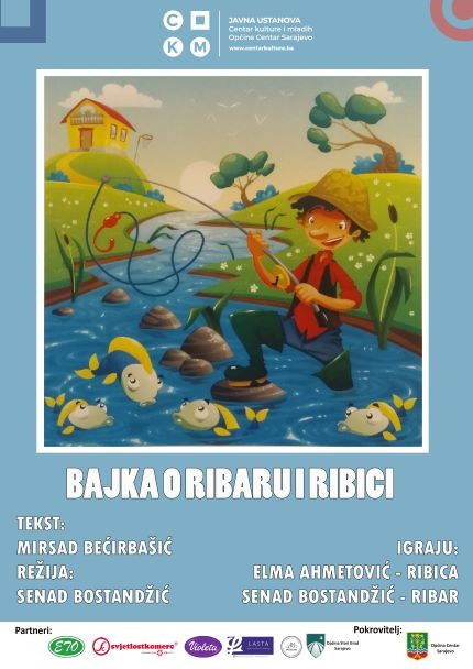 Javna ustanova Centar kulture i mladih Općine Centar Sarajevo, u utorak 26. aprila našim sugrađanima predstaviće se sa dva kulturna događaja. Za najmlađe mališane iz JU Djeca Sarajeva biće odigrana jedna od najdugovječnijih dječijih predstava“Bajka o ribaru i ribici“(40 godina igranja). Poznati motiv mnogih bajki-ribar i zlatna ribica, tek je podsticaj koji u tekstu Mirsada Bećirbašića prerasta u autentičnu, razgranu ljubavnu priču izmđu dječaka-ribara i djevojčice –ribice. Dječak – ribar ne može bez ribice baš kao što ni djevojčica-ribica ne može bez ribara.”A dvije želje kad se sretnu, postaju stvarnost”-osnovna je poruka pisca. Tekst je naišao na razigrane kreativne interpretatore Elmu Ahmetović i Senada Bostandžića, pa obogaćen muzičkim numerama najdirektnije dopire do ritma dječijih osjećaja, mašte i doživljaja svijeta. Predstava uspostavlja direktnu komunikaciju sa gledalištem koje također postaje učesnik u predstavi sa porukom da je sve moguće uz ljubav i da je ljubav ta koja obnavlja sokove mašte i igre. Tekst potpisuje Mirsad Bećirbašić, režiju, dramatizaciju i muziku Senad Bostandžić. Predstava, koja će donijeti mnogo radosti i zadovoljstva najmlađima, biće odigrana u 10 sati, u velikoj sali CKM.